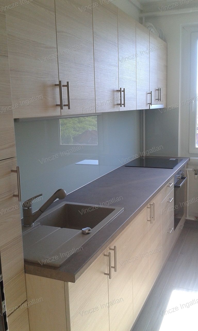 -Ízléses, beépített konyhabútor, üveg hátlappal, beépített sütővel, indukciós főzőlappal és gránit mosogatóval