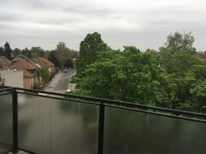 A nappalihoz erkély kapcsolódik, amely zöldövezetre, családi házakra néz, kellemes, nyugodt kilátást biztosítva.